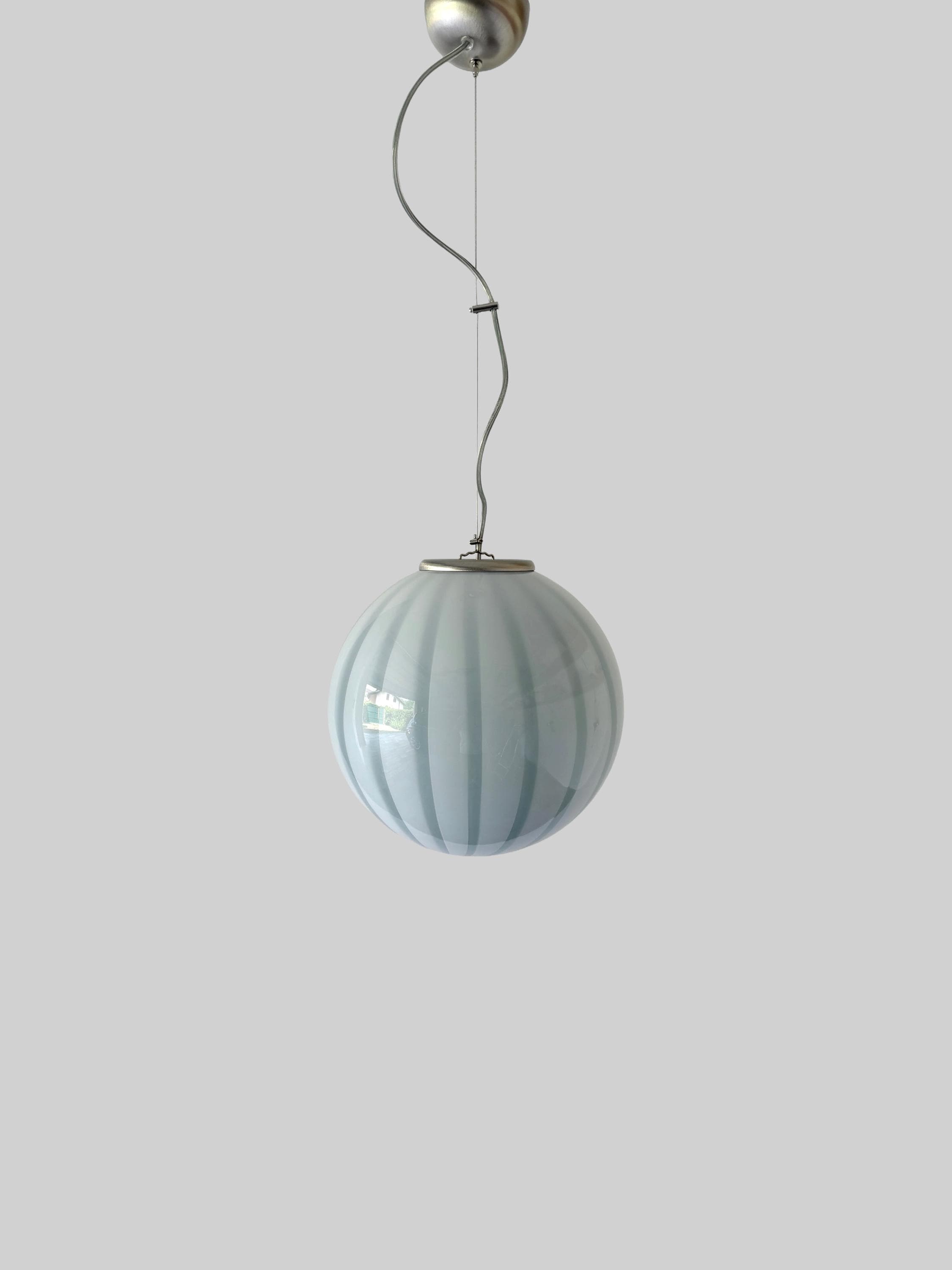 Plafoniera CLOUD BLUE MURANO con vetro Rigadin dritto, vetro di Murano originale con filo nuovo, struttura in metallo rifinita in argento.