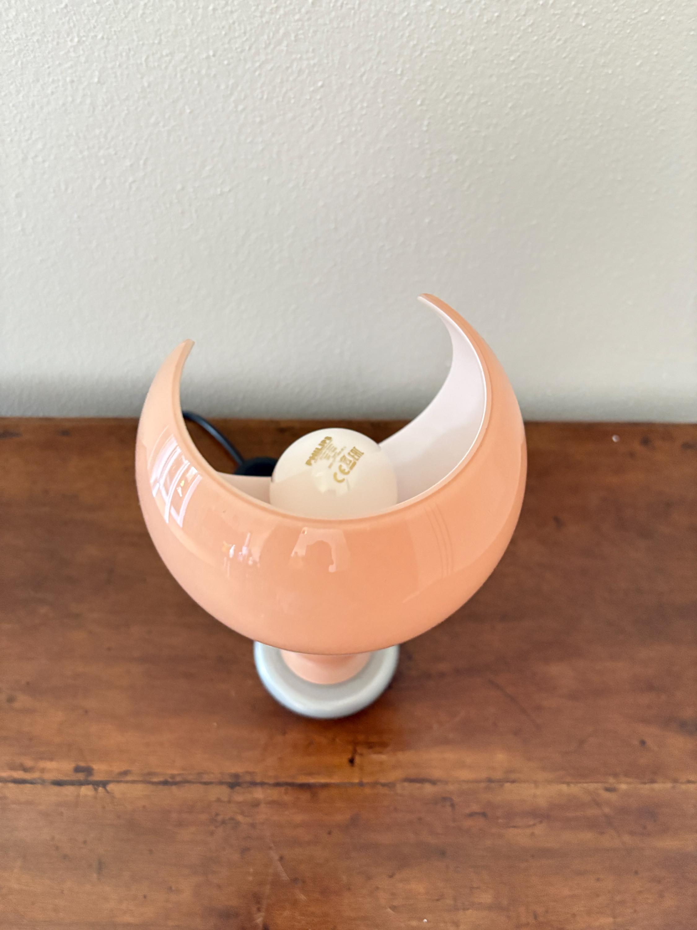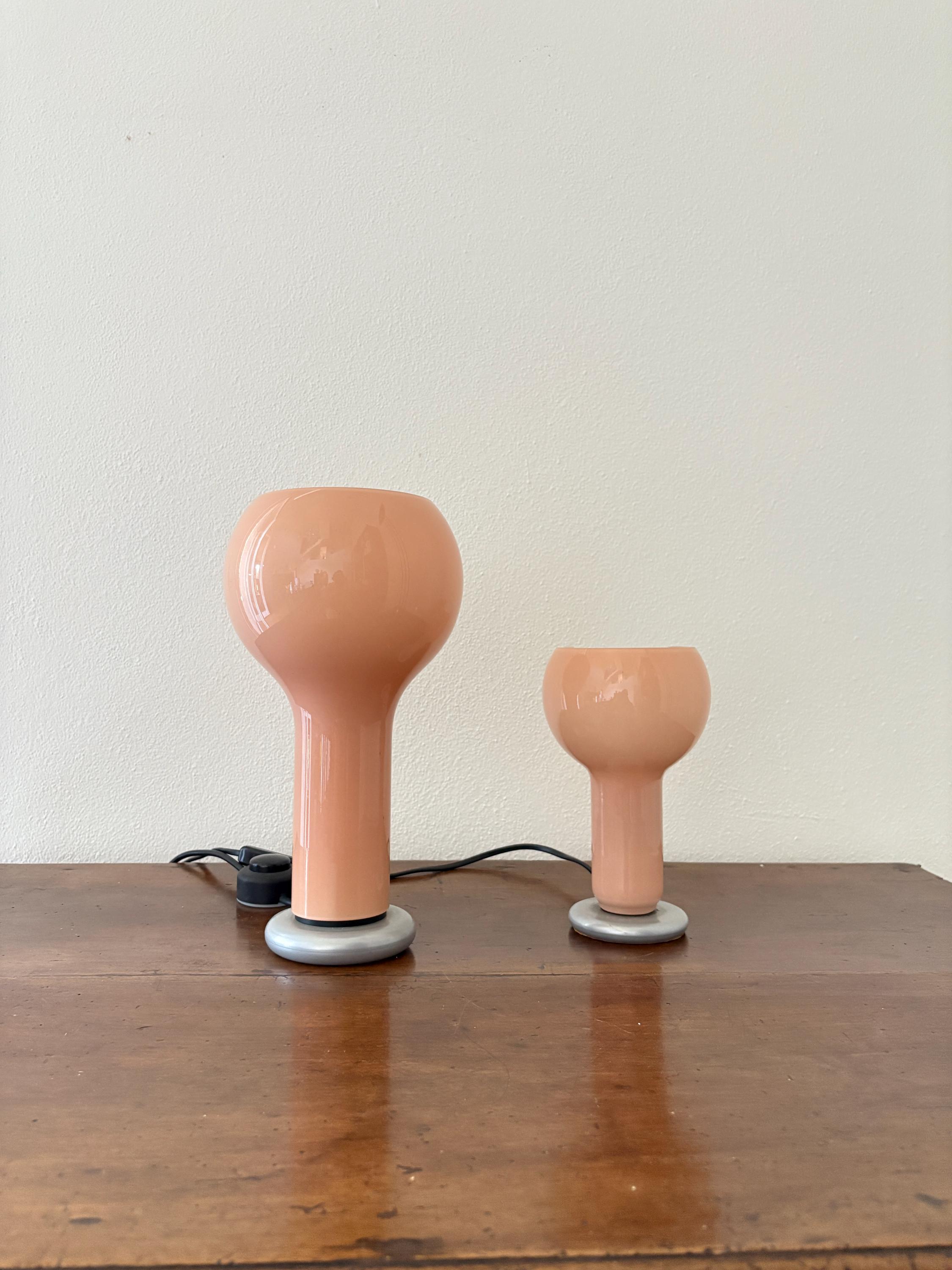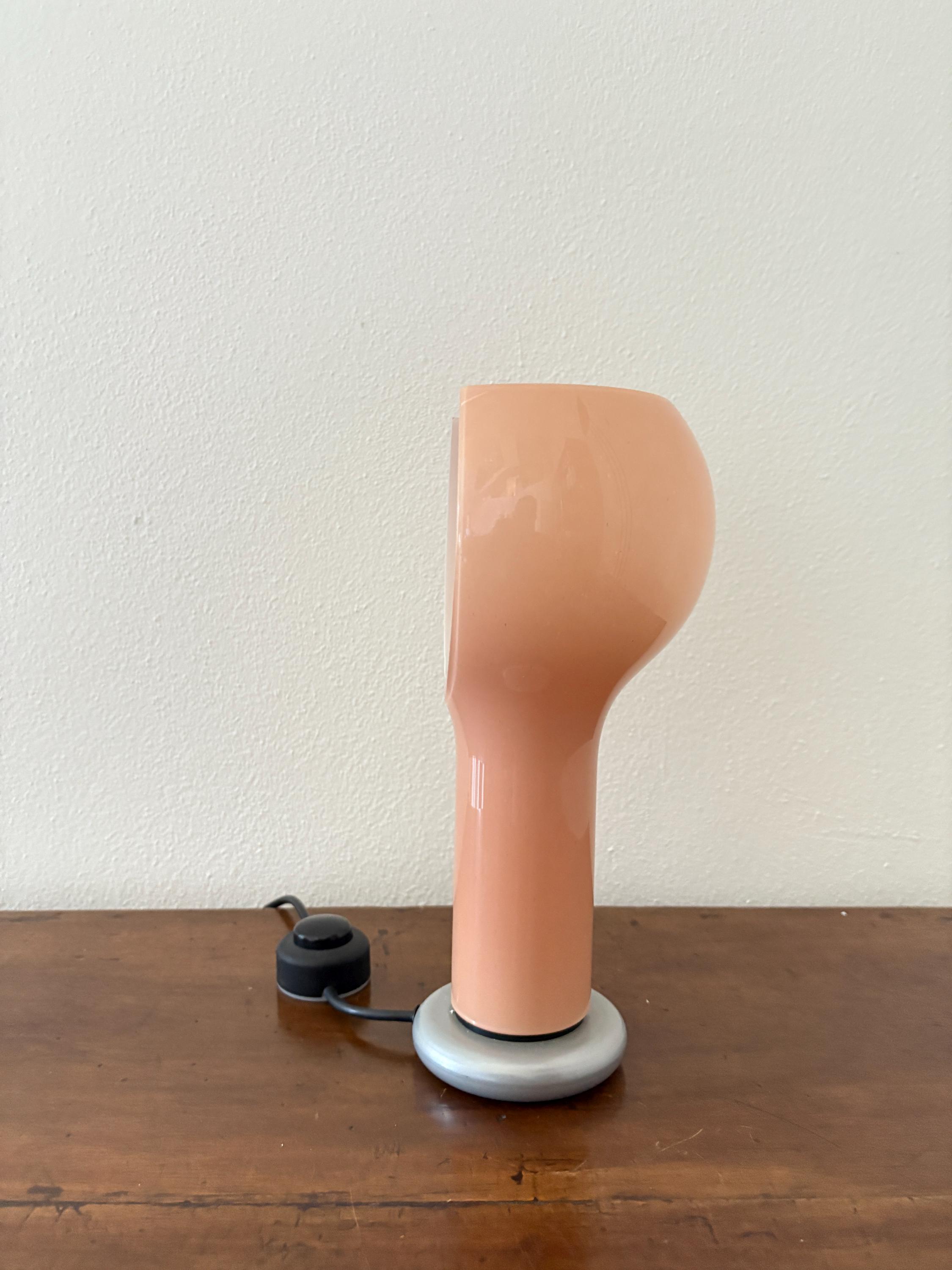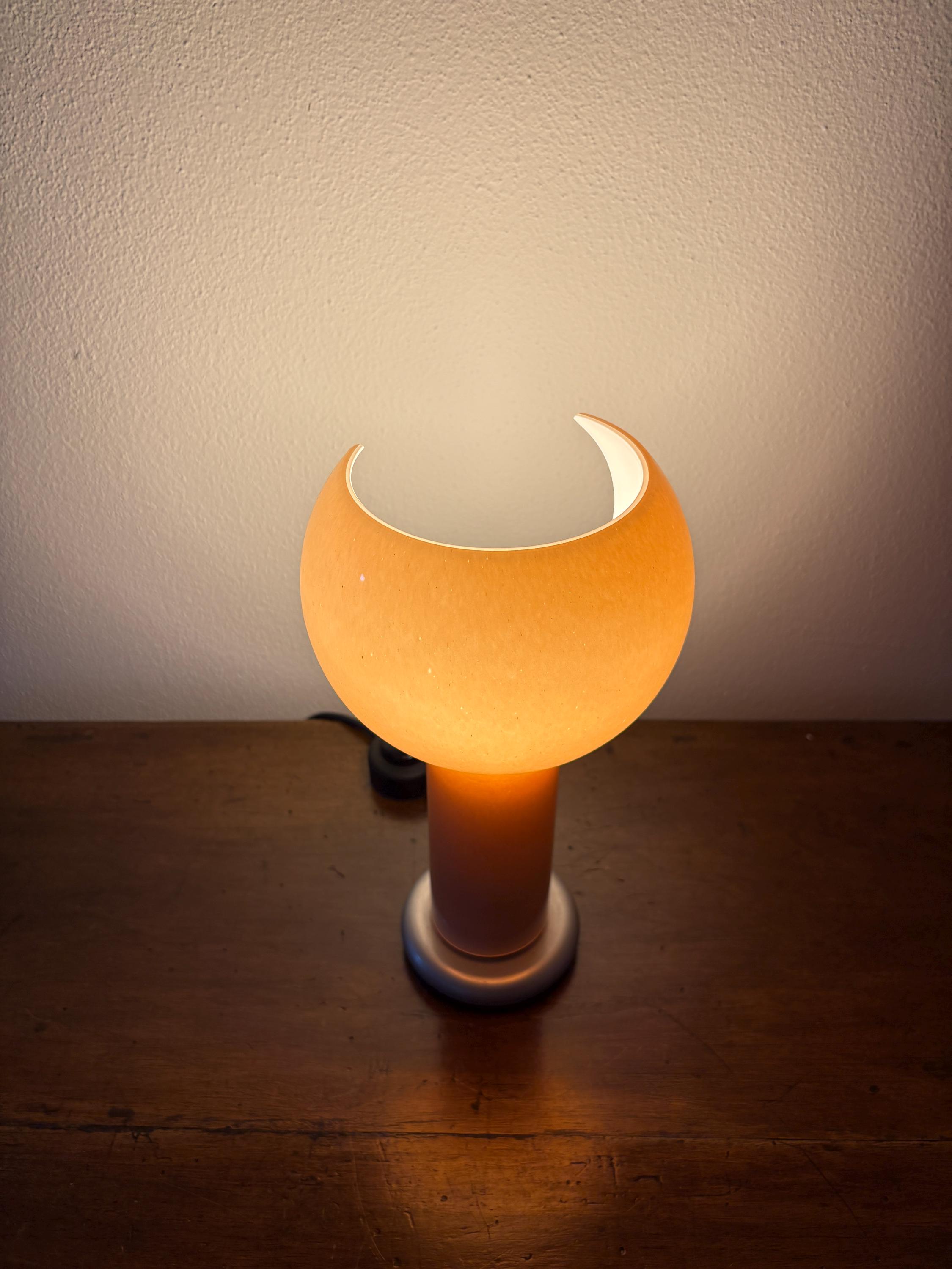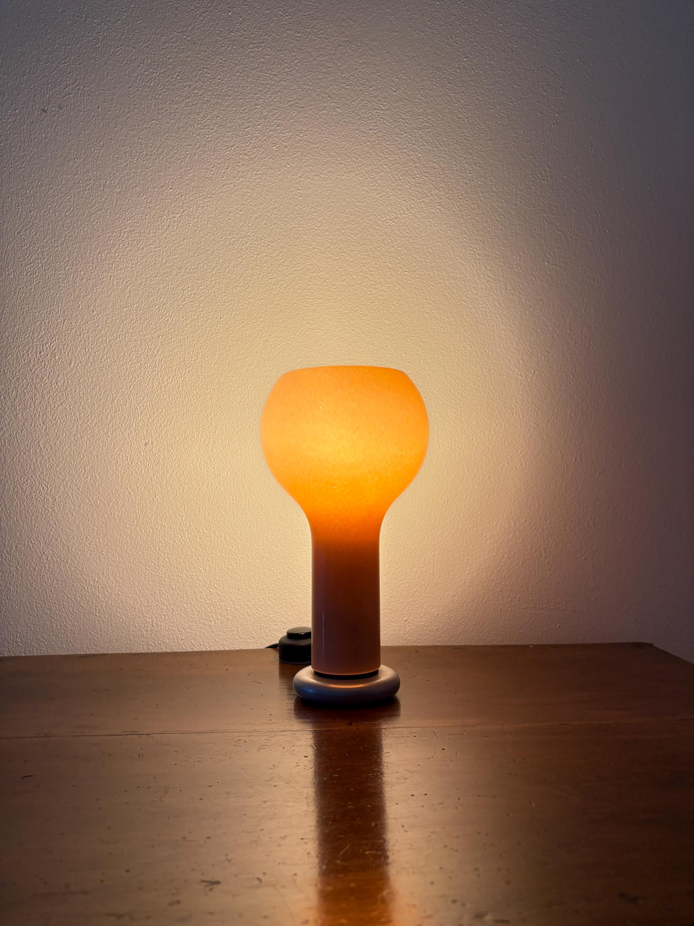 Il design originale della lampada da tavolo Flash di Oluce risale agli anni '60. Era realizzata in metallo. Lampade Flash prodotte da OLUCE design Joe Colombo. Questa versione in vetro è stata realizzata negli anni '90. È un omaggio al suo designer, Joe Colombo.
