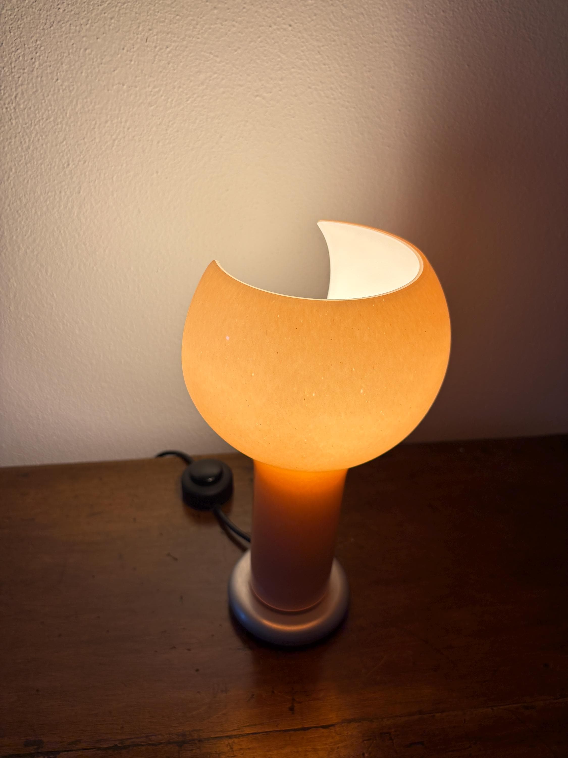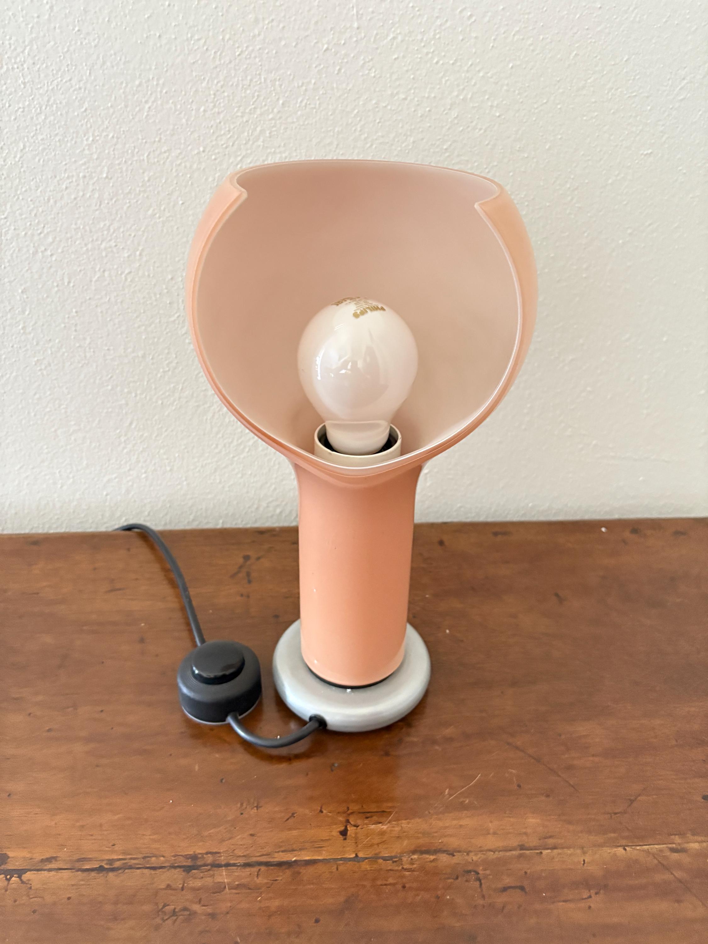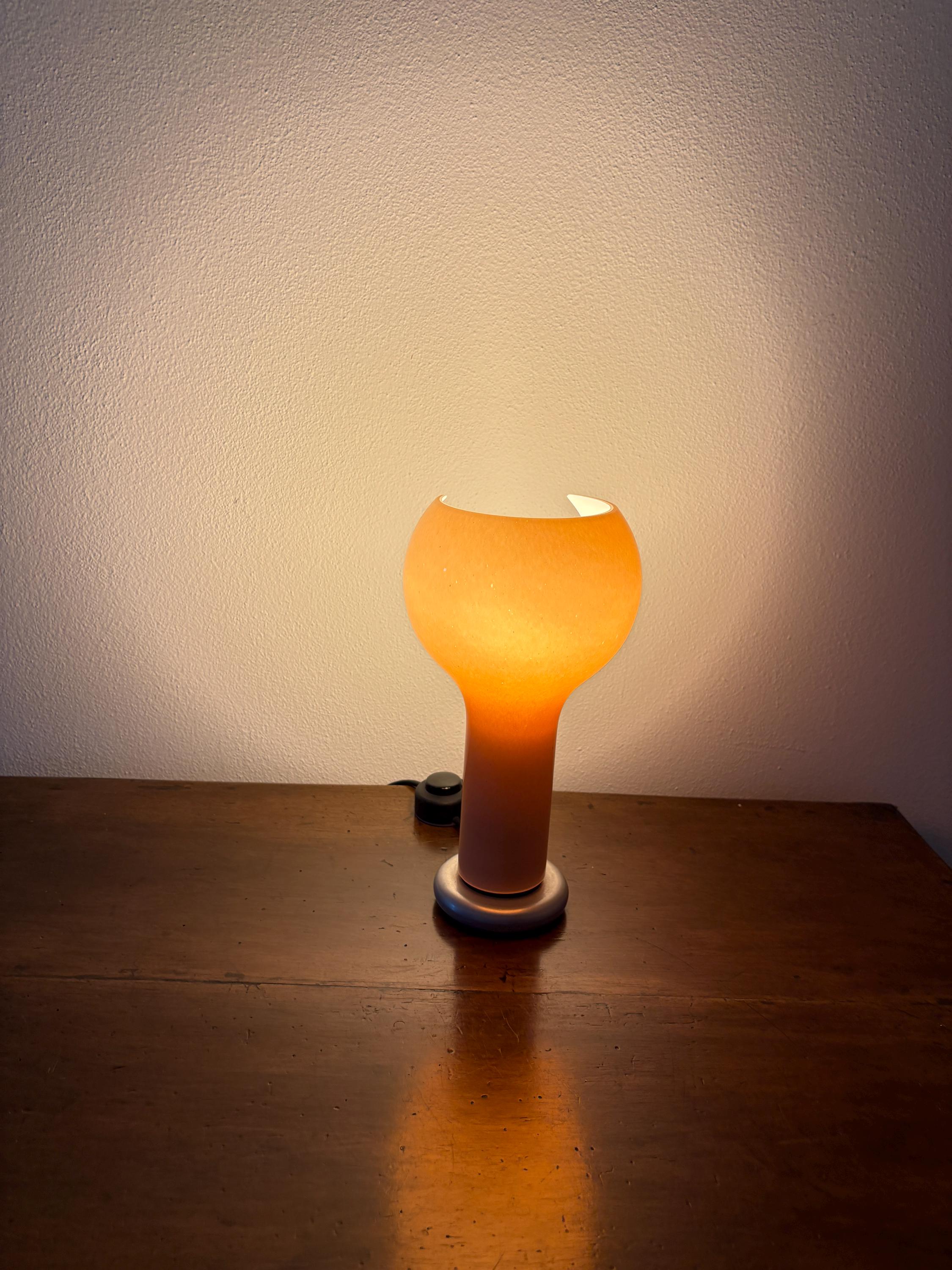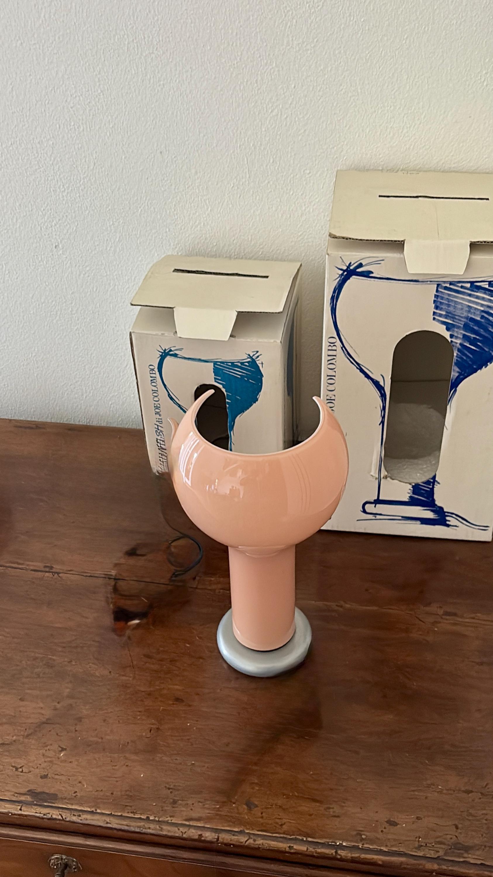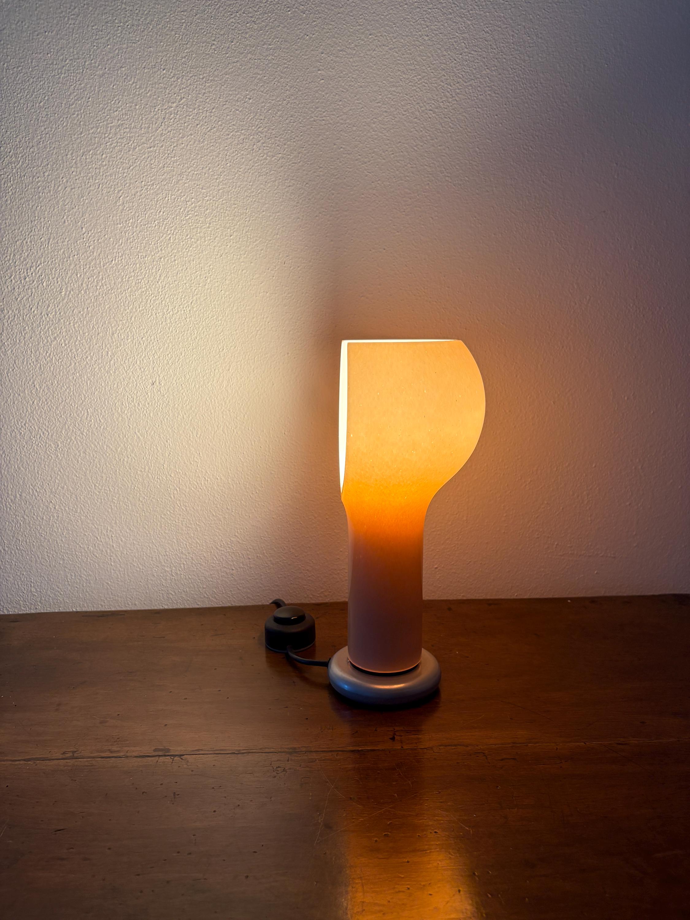 Che ha creato la lampada da tavolo Flash di Oluce negli anni '60, realizzandola interamente in metallo. Versione anni '90. È realizzata in vetro di MURANO con base in metallo. Originale, vintage ma mai utilizzata, è accompagnata dalla sua scatola originale. Dimensioni: altezza 31 centimetri - larghezza 16 cm - profondità 13 cm. Utilizza una lampadina con attacco E27.