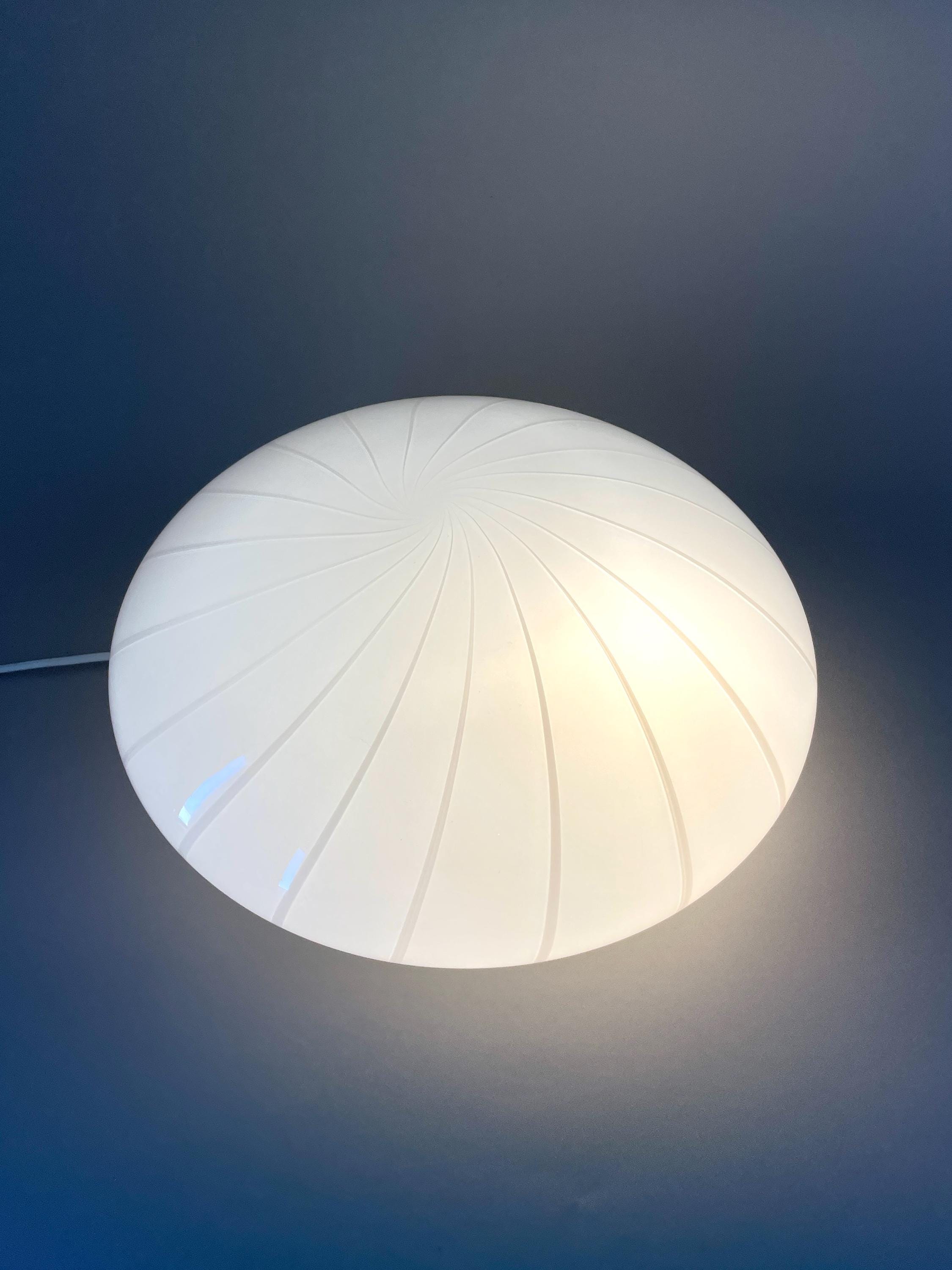 Questa lampada vintage di Murano è un'icona di stile ed eleganza che la tua casa merita. Il design rigadin a spirale bianco cattura la luce in modo unico, creando un'atmosfera sofisticata e accogliente. La sua versatilità la rende ideale per chi cerca un pezzo funzionale ma straordinariamente decorativo. Se desiderate un oggetto esclusivo che unisca storia, arte e bellezza, questa lampada è un investimento irrinunciabile per valorizzare i vostri spazi.