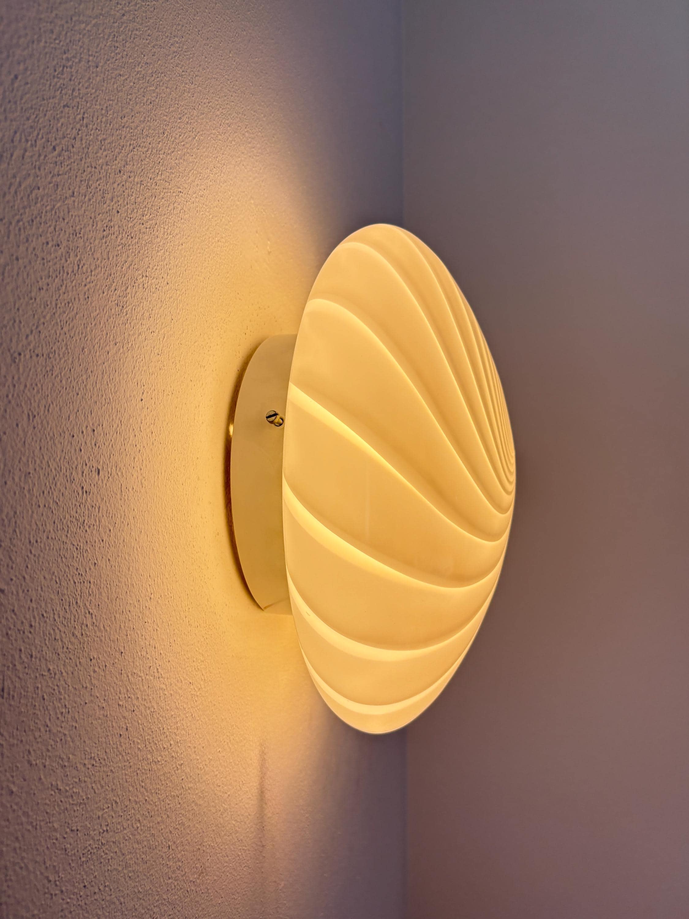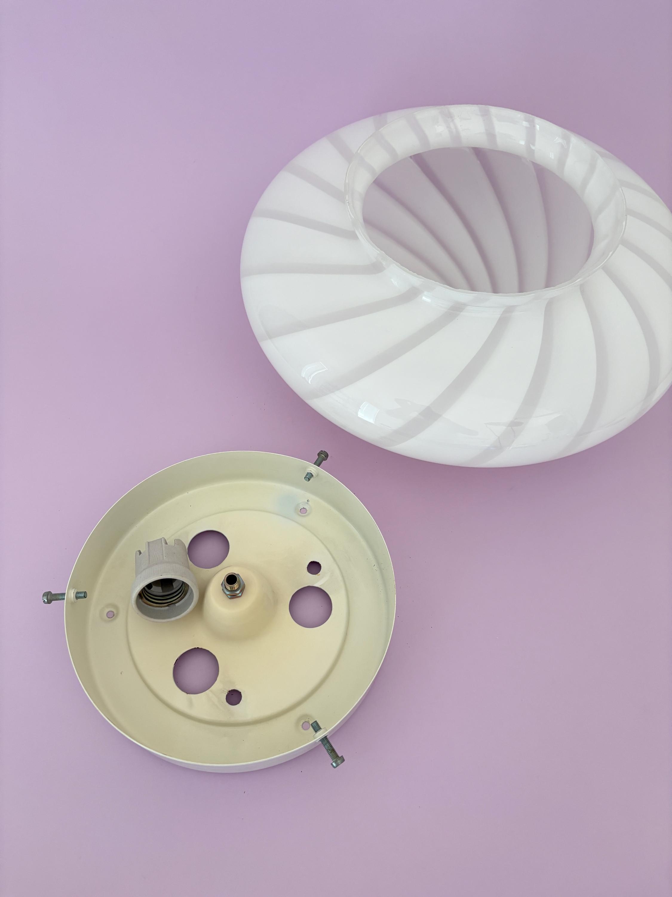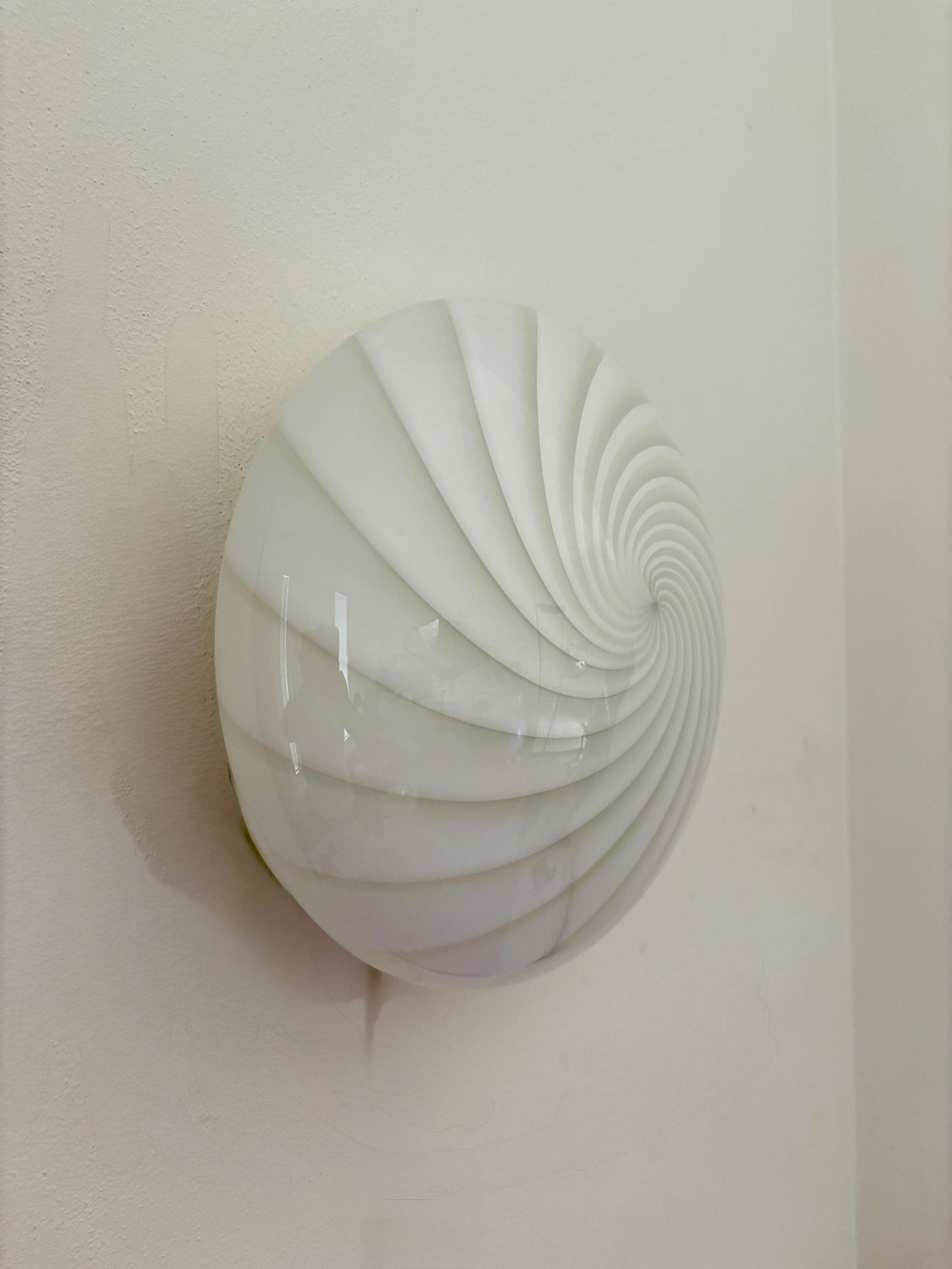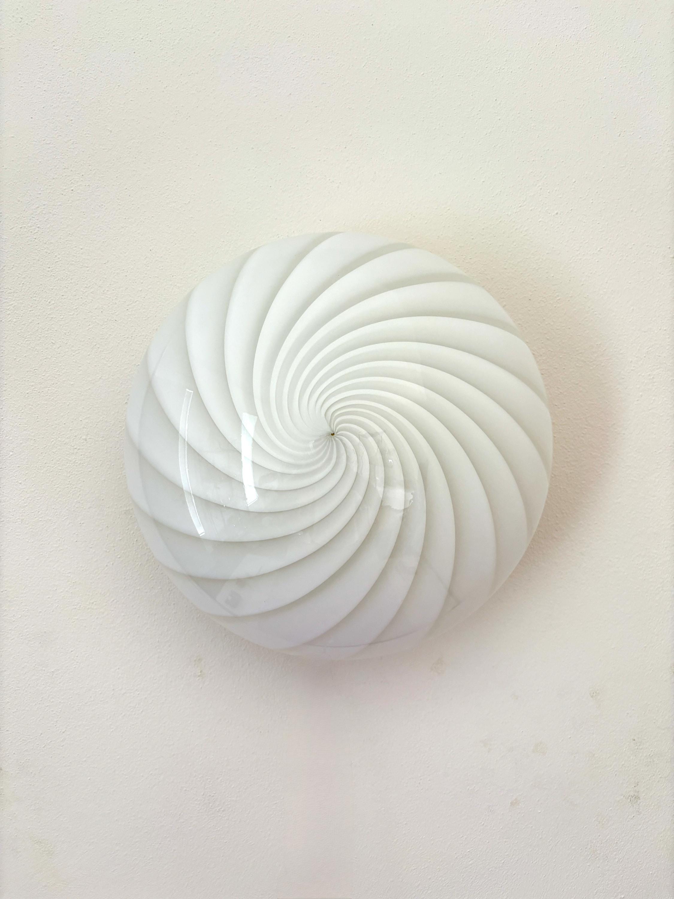 ✨ Un capolavoro di Murano: questa lampada vintage è una vera opera d'arte, con uno splendido vetro rigadin a spirale bianco che cattura lo sguardo e illumina con raffinatezza.