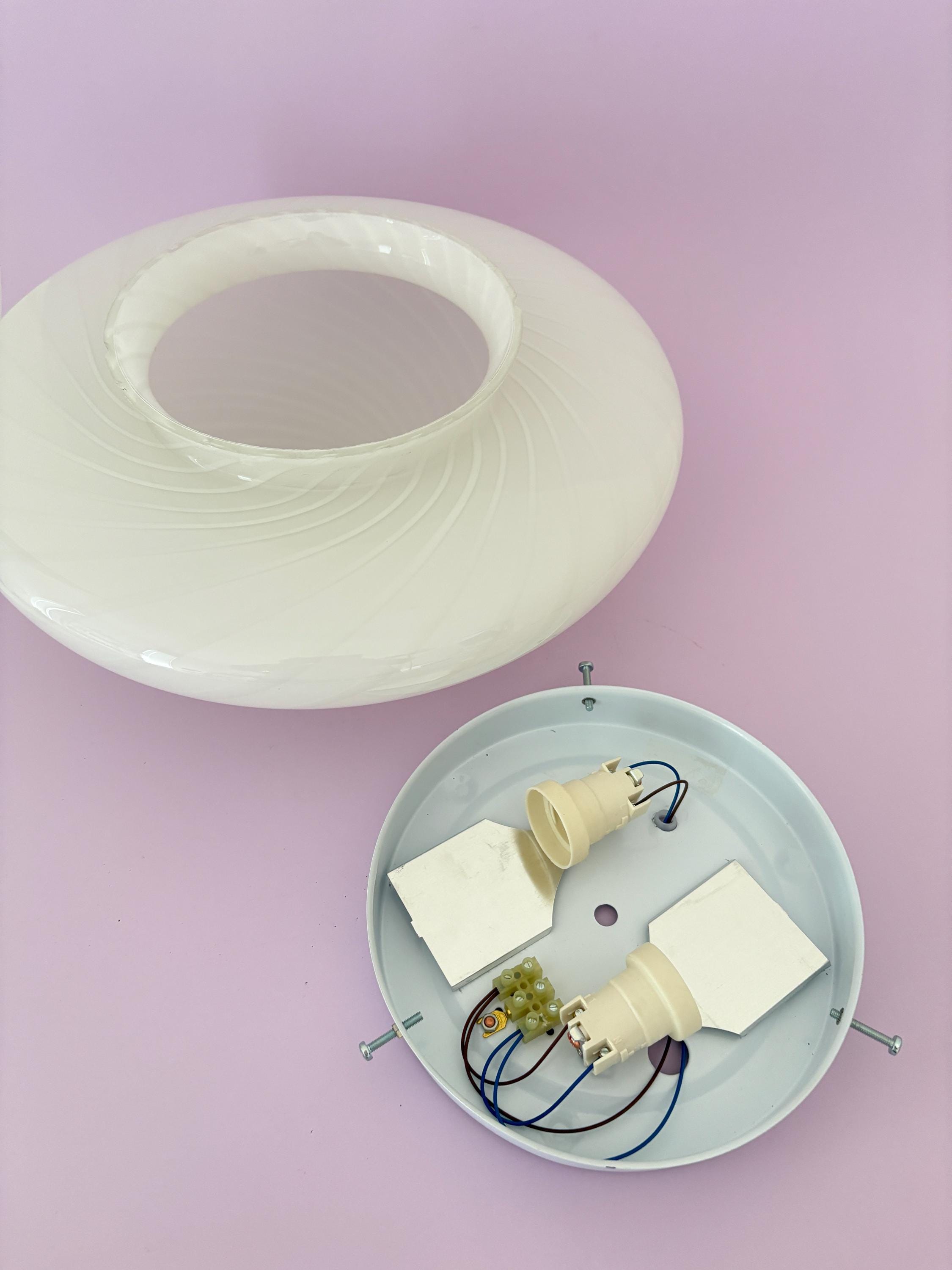 Questa lampada vintage di Murano è un'icona di stile ed eleganza che la tua casa merita. Il design rigadin a spirale bianco cattura la luce in modo unico, creando un'atmosfera sofisticata e accogliente. La sua versatilità la rende ideale per chi cerca un pezzo funzionale ma straordinariamente decorativo. Se desiderate un oggetto esclusivo che unisca storia, arte e bellezza, questa lampada è un investimento irrinunciabile per valorizzare i vostri spazi.