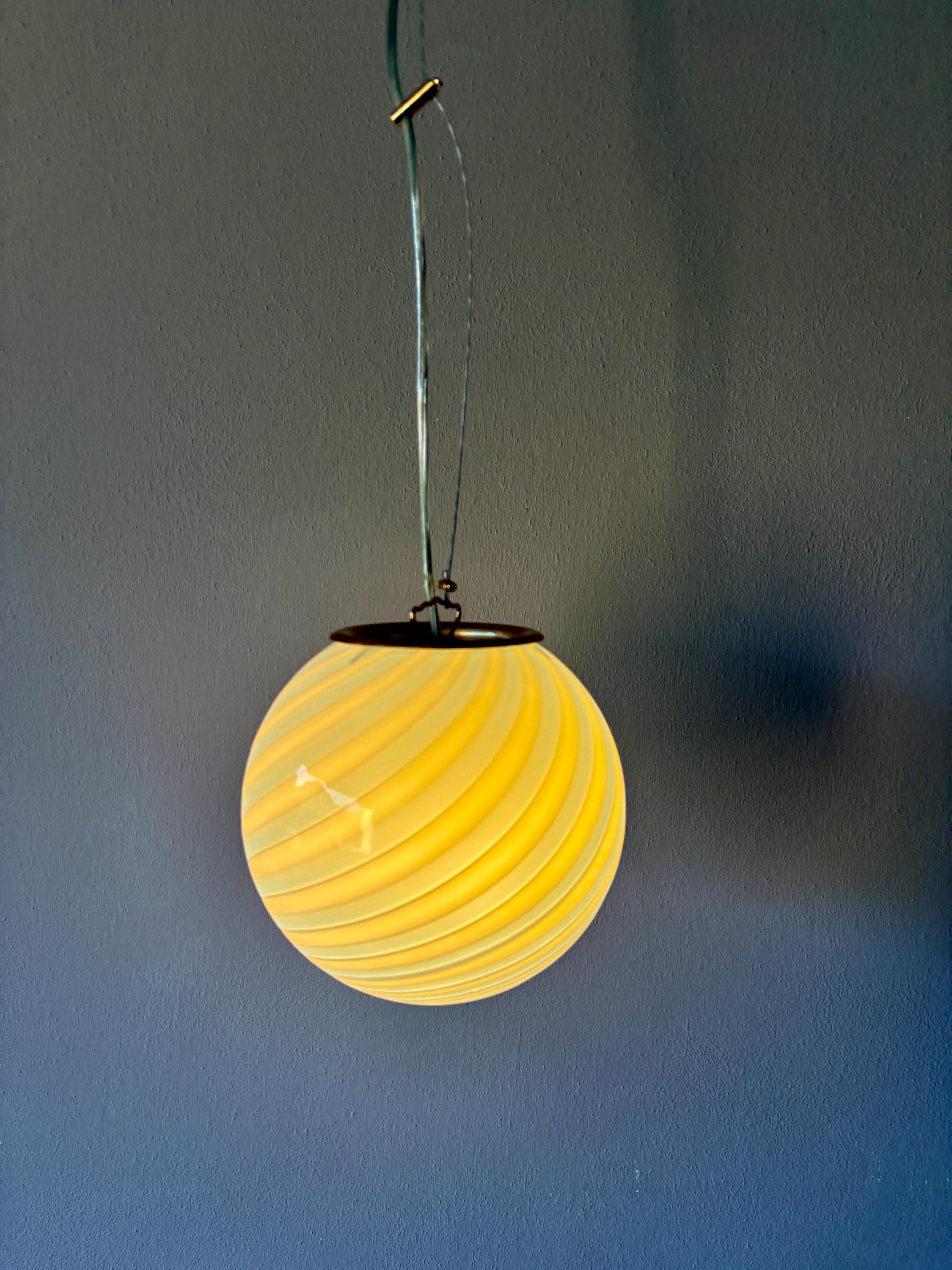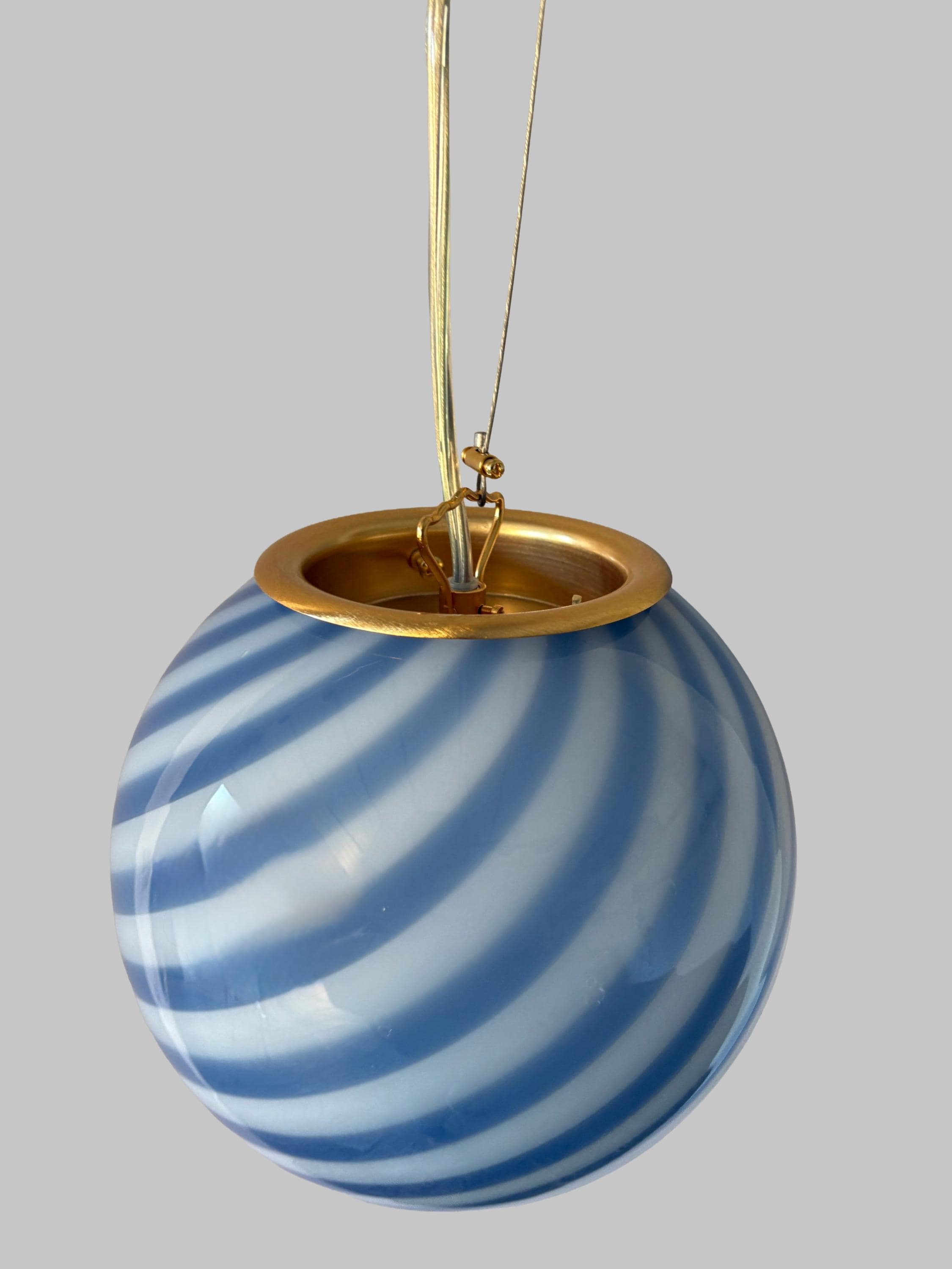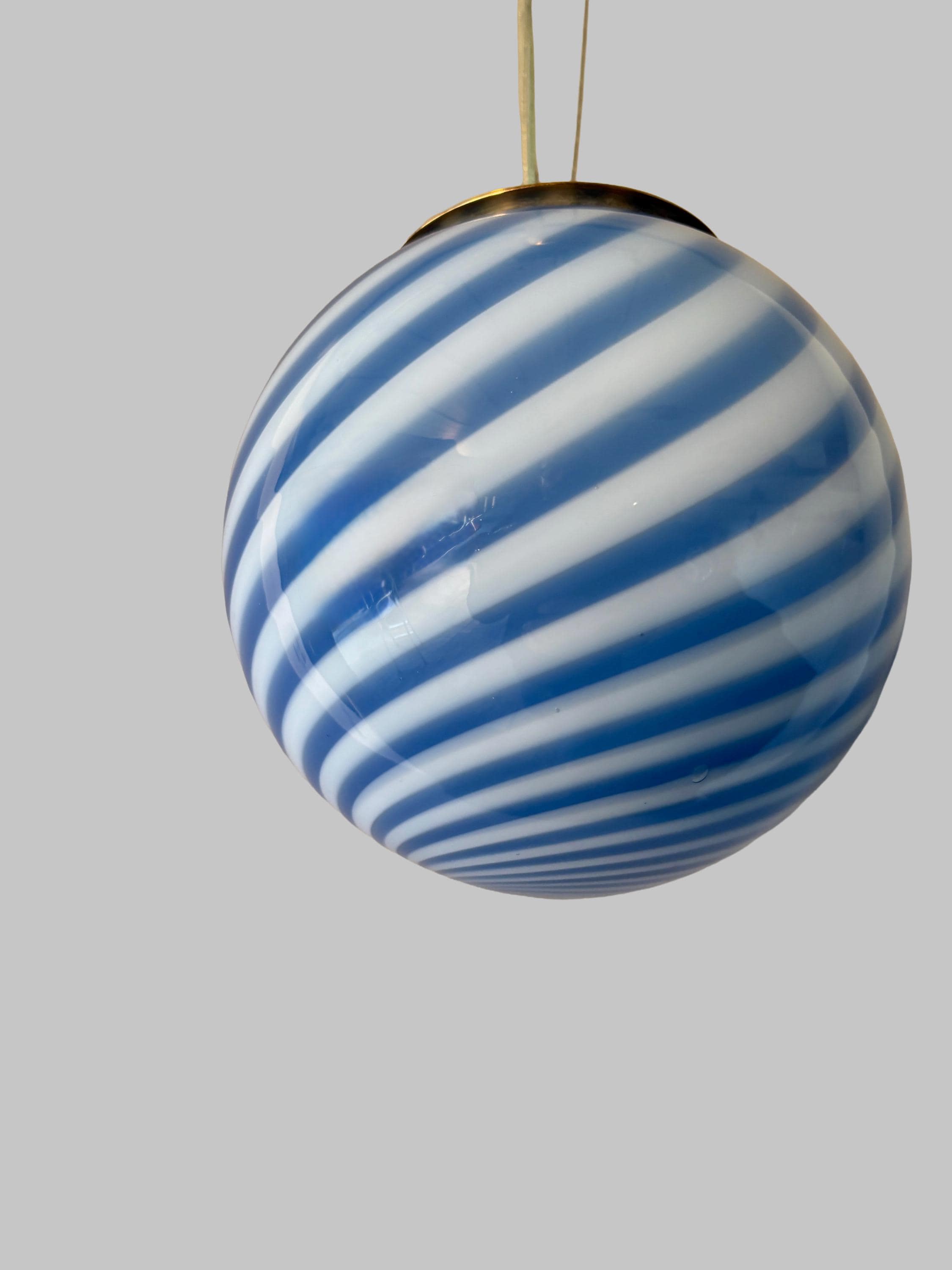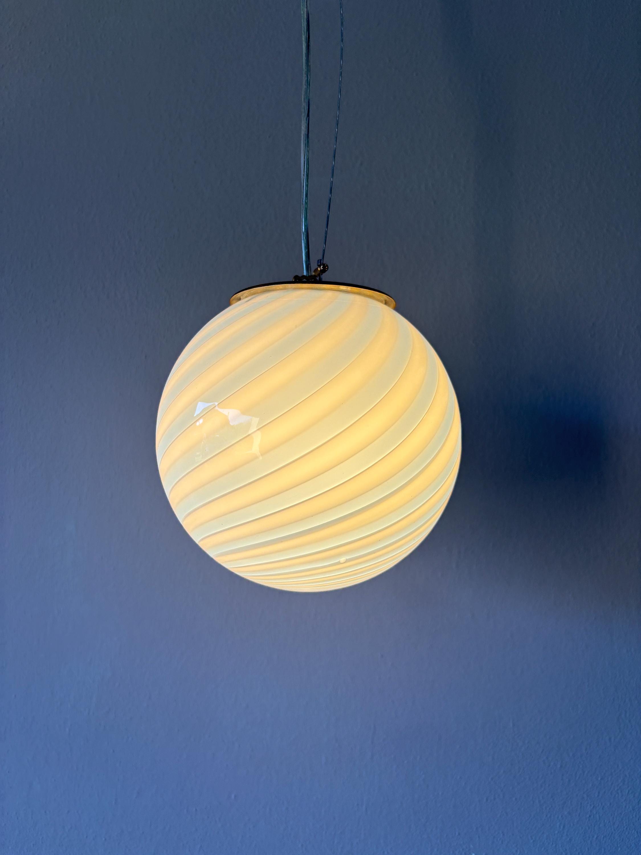 Questa splendida lampada in filigrana di Murano è un vero capolavoro artigianale, realizzata a mano dai maestri vetrai muranesi con l'antica tecnica della lavorazione del rigadin ritorto
