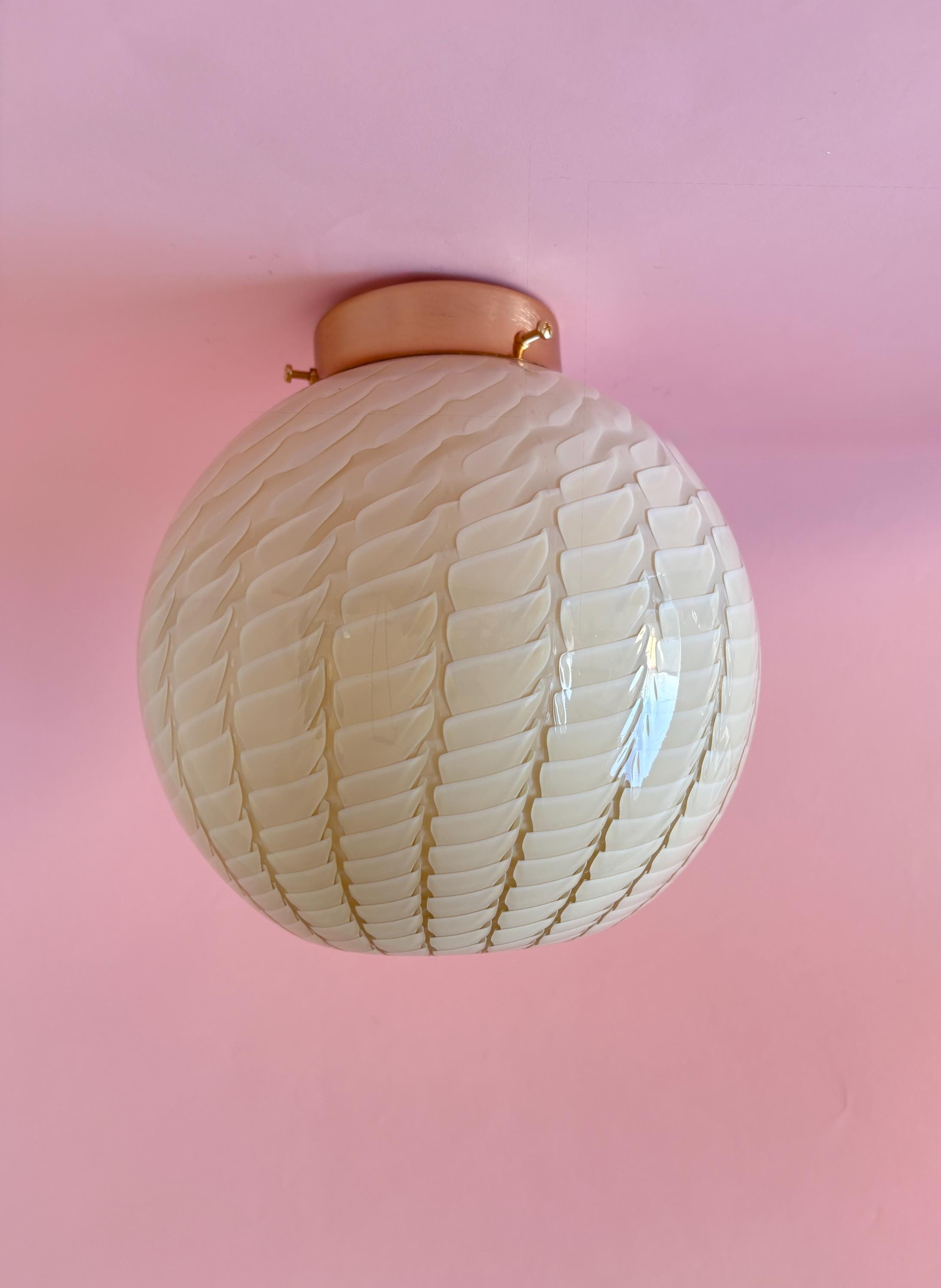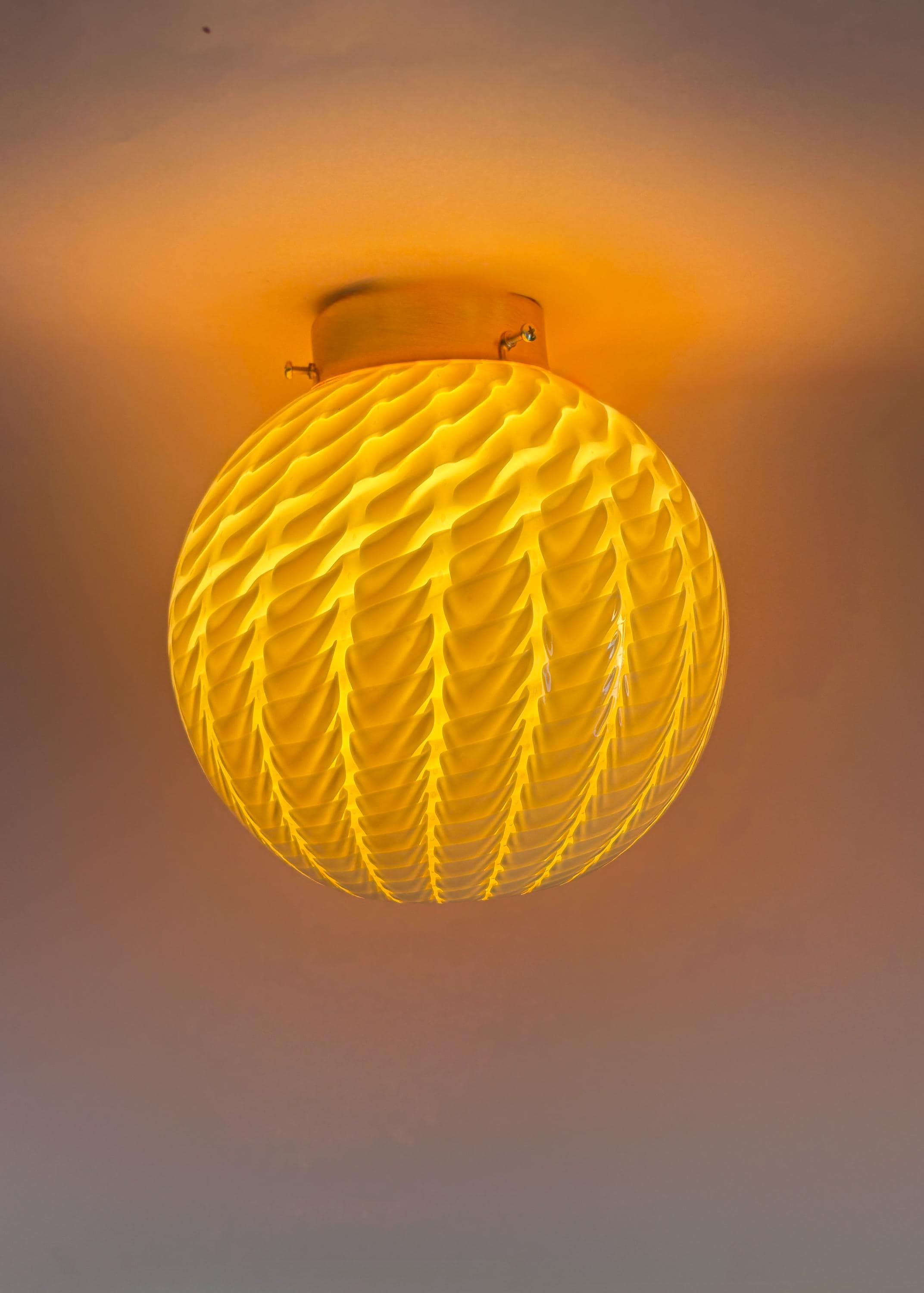 Questa lampada vintage di Murano è un'icona di stile ed eleganza che la tua casa merita. Il design rigadin a spirale bianco cattura la luce in modo unico, creando un'atmosfera sofisticata e accogliente. La sua versatilità la rende ideale per chi cerca un pezzo funzionale ma straordinariamente decorativo. Se desiderate un oggetto esclusivo che unisca storia, arte e bellezza, questa lampada è un investimento irrinunciabile per valorizzare i vostri spazi.
