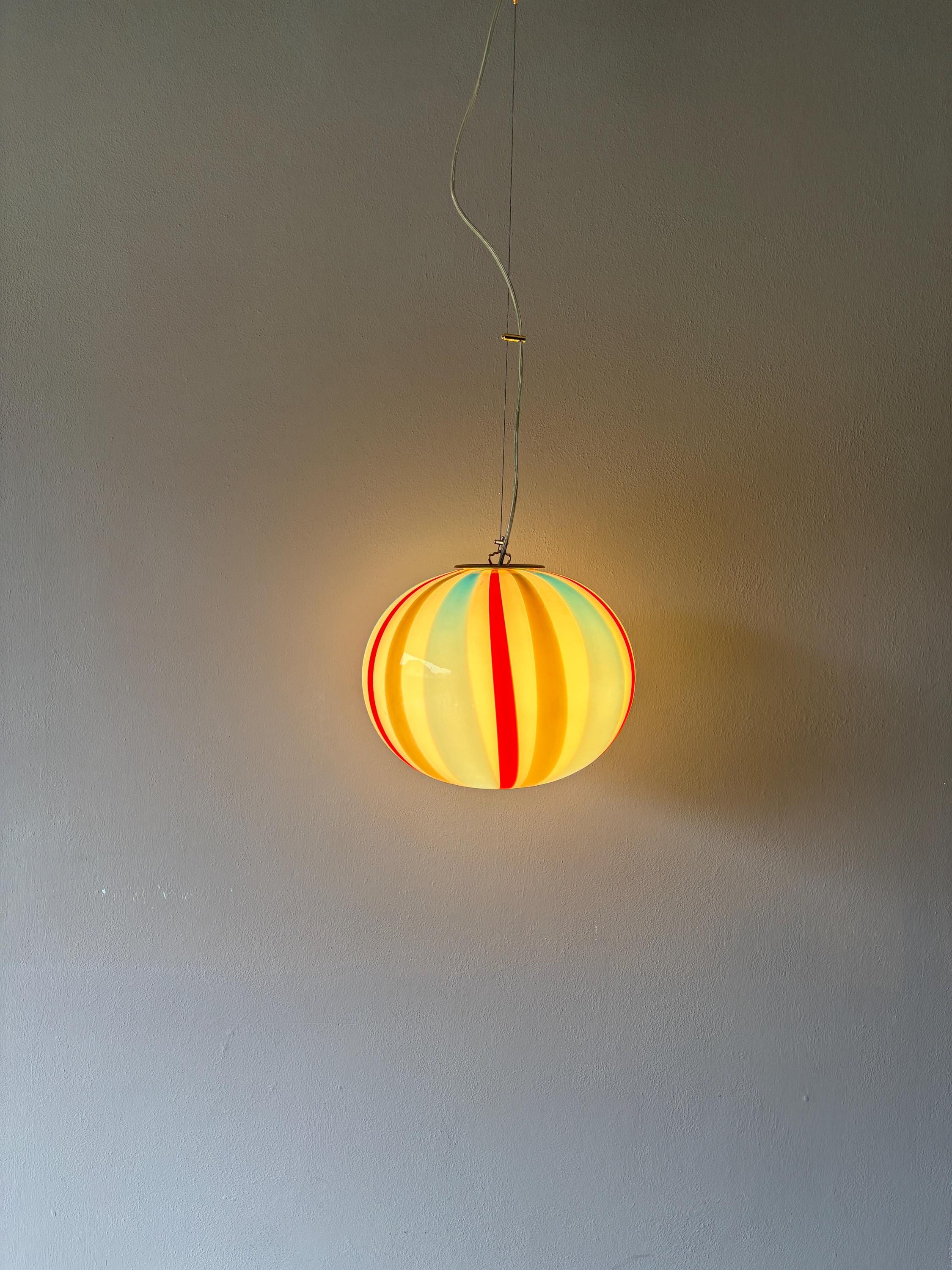 Lampade realizzate a mano da maestri vetrai con l'antica tecnica Muranese della lavorazione a canne di vetro colorate.