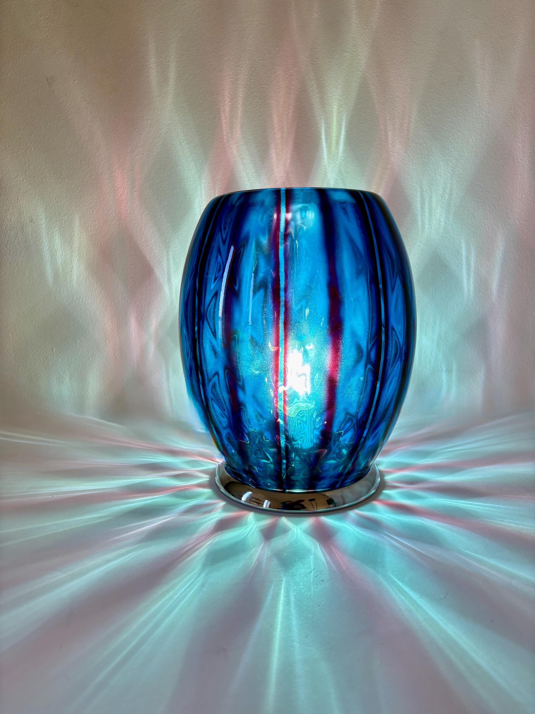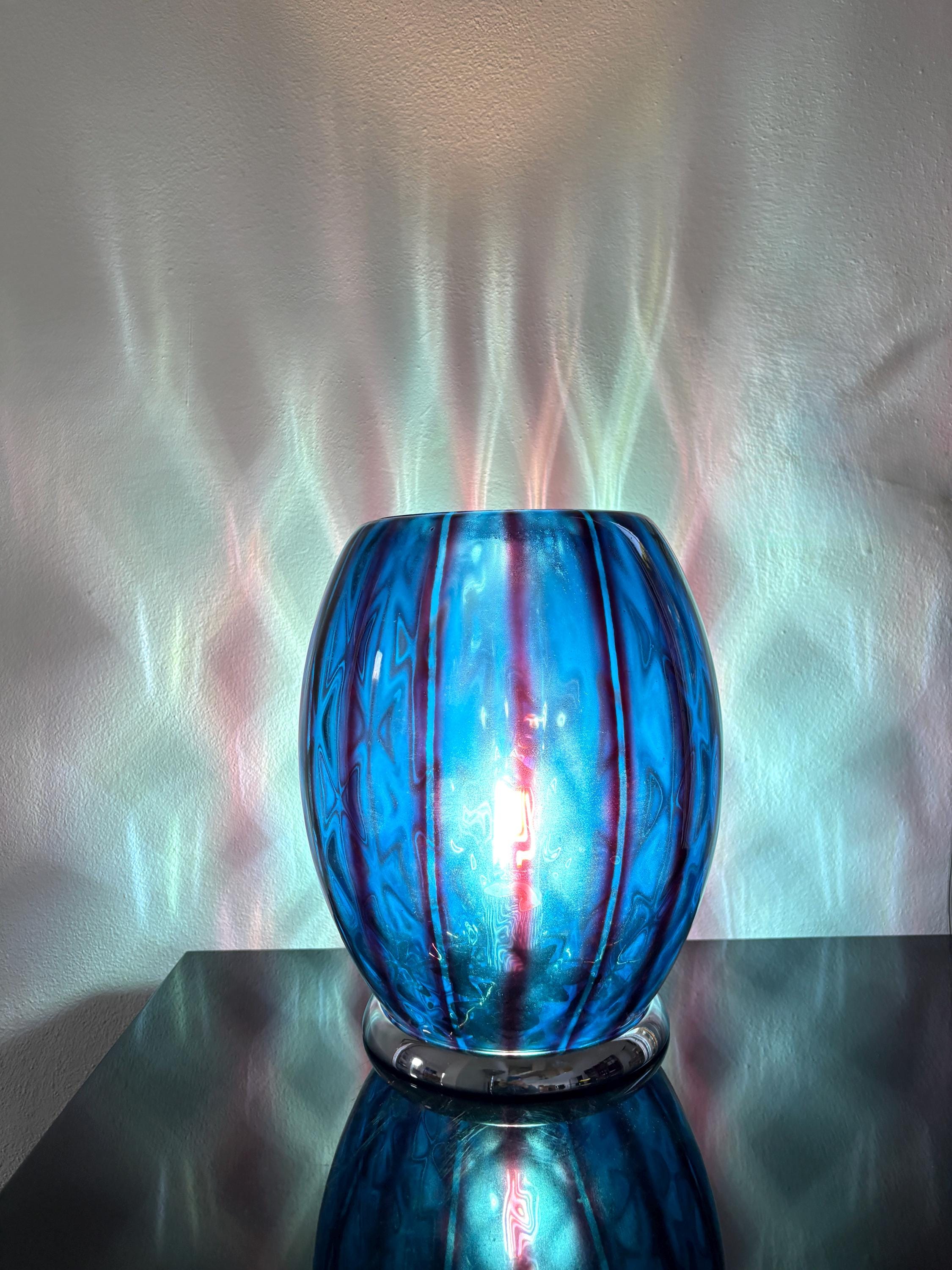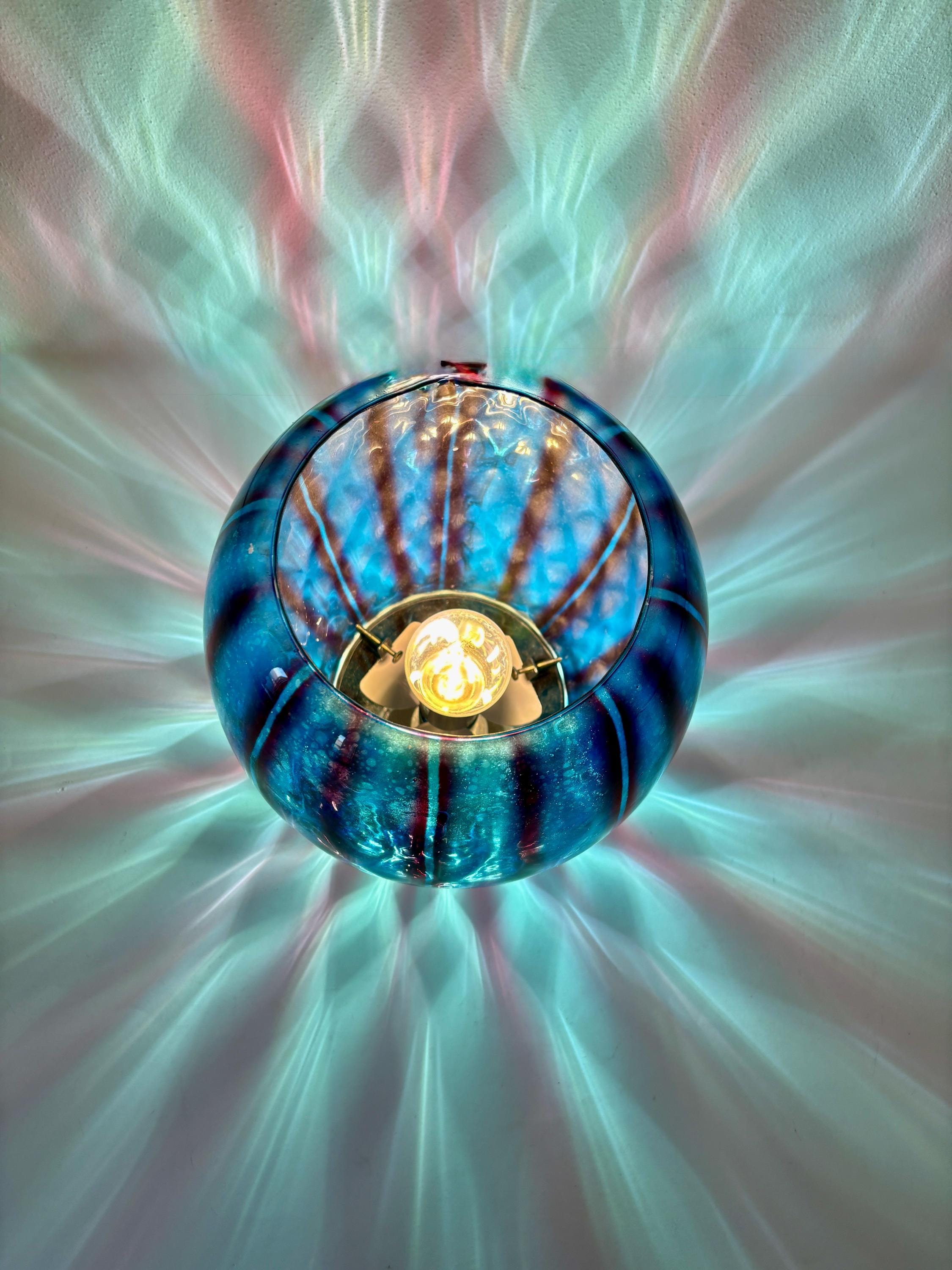 stupenda lampada in vetro con doppia lavorazione che si può ammirare quando la lampada è accesa