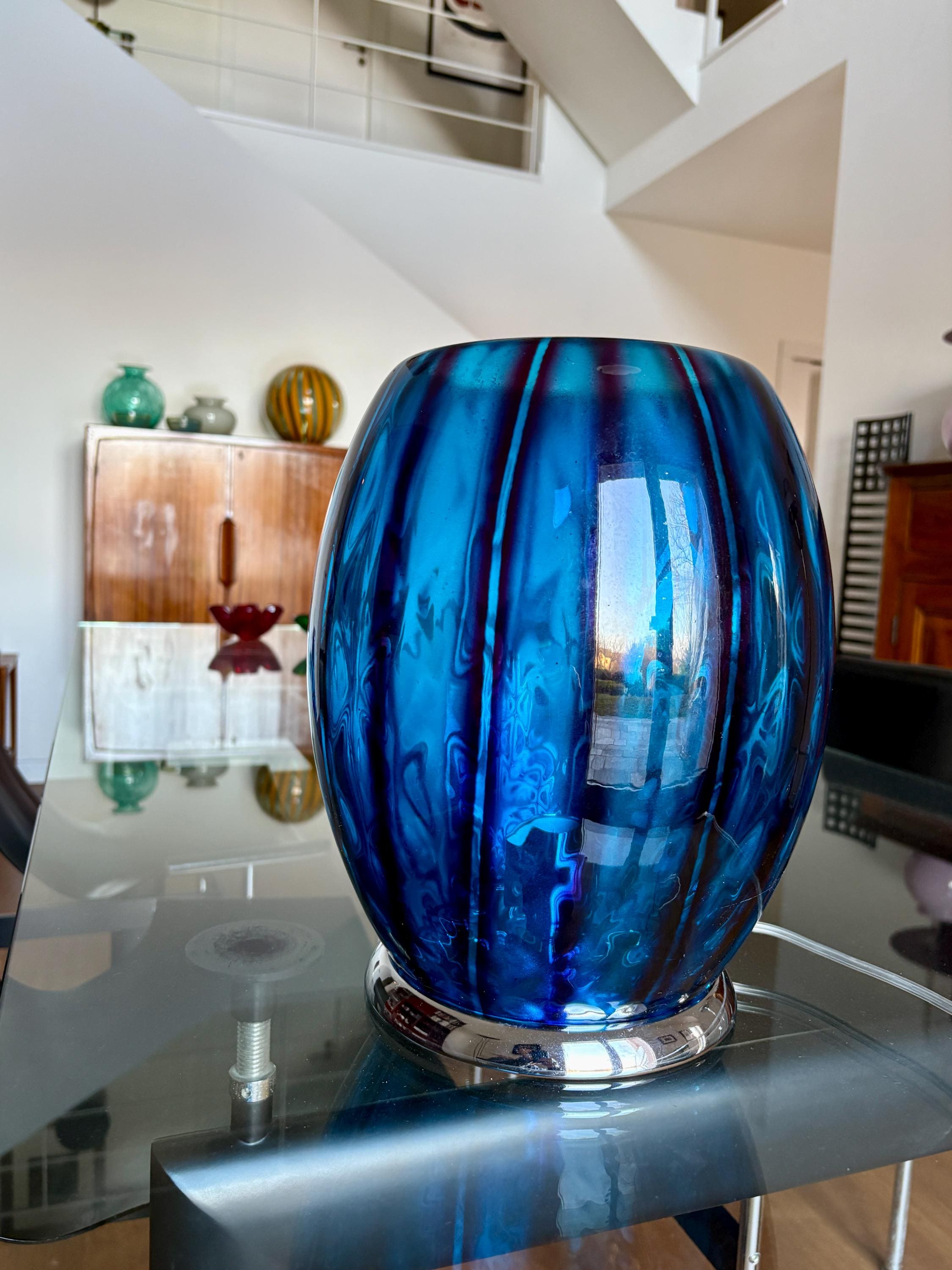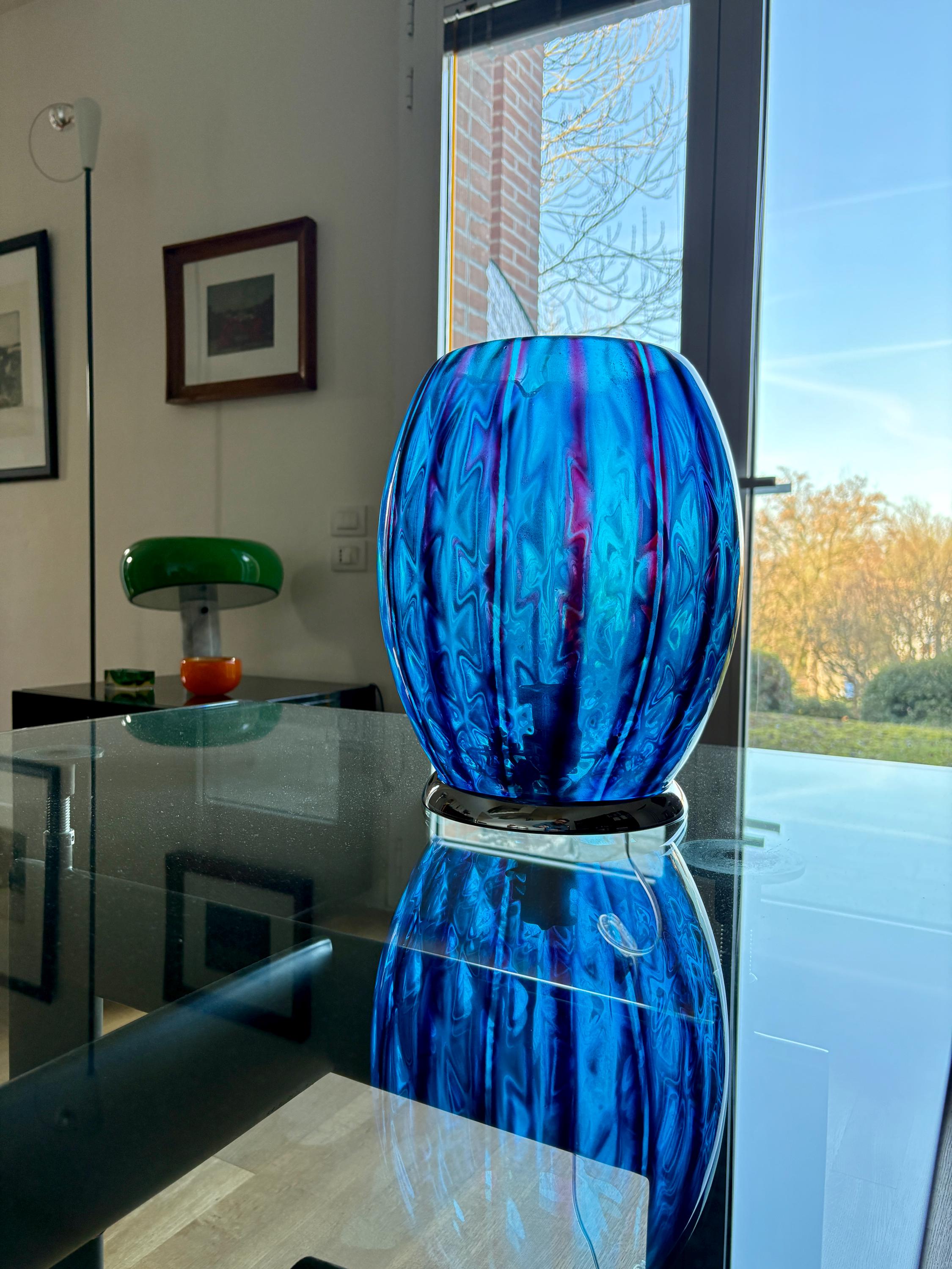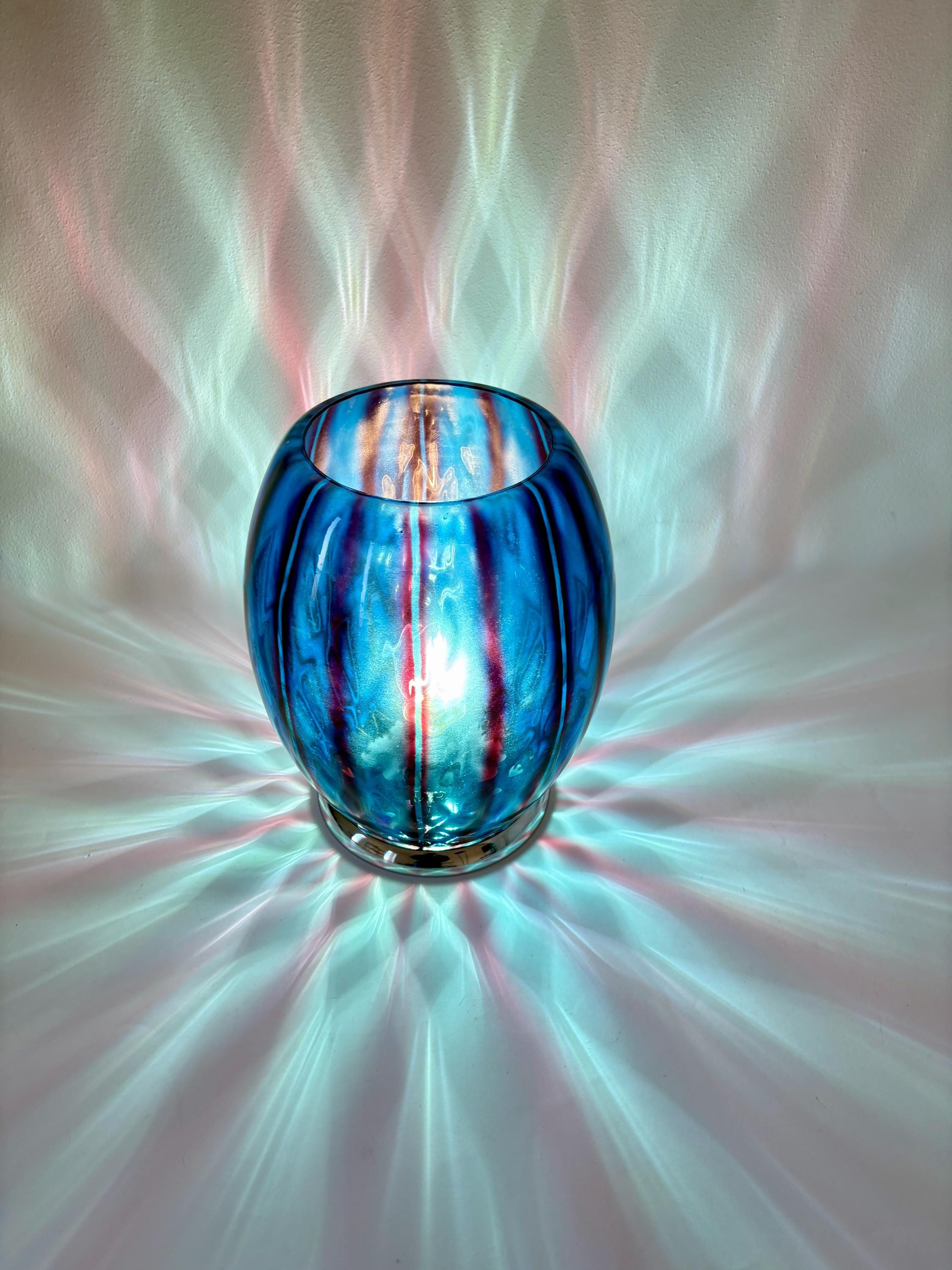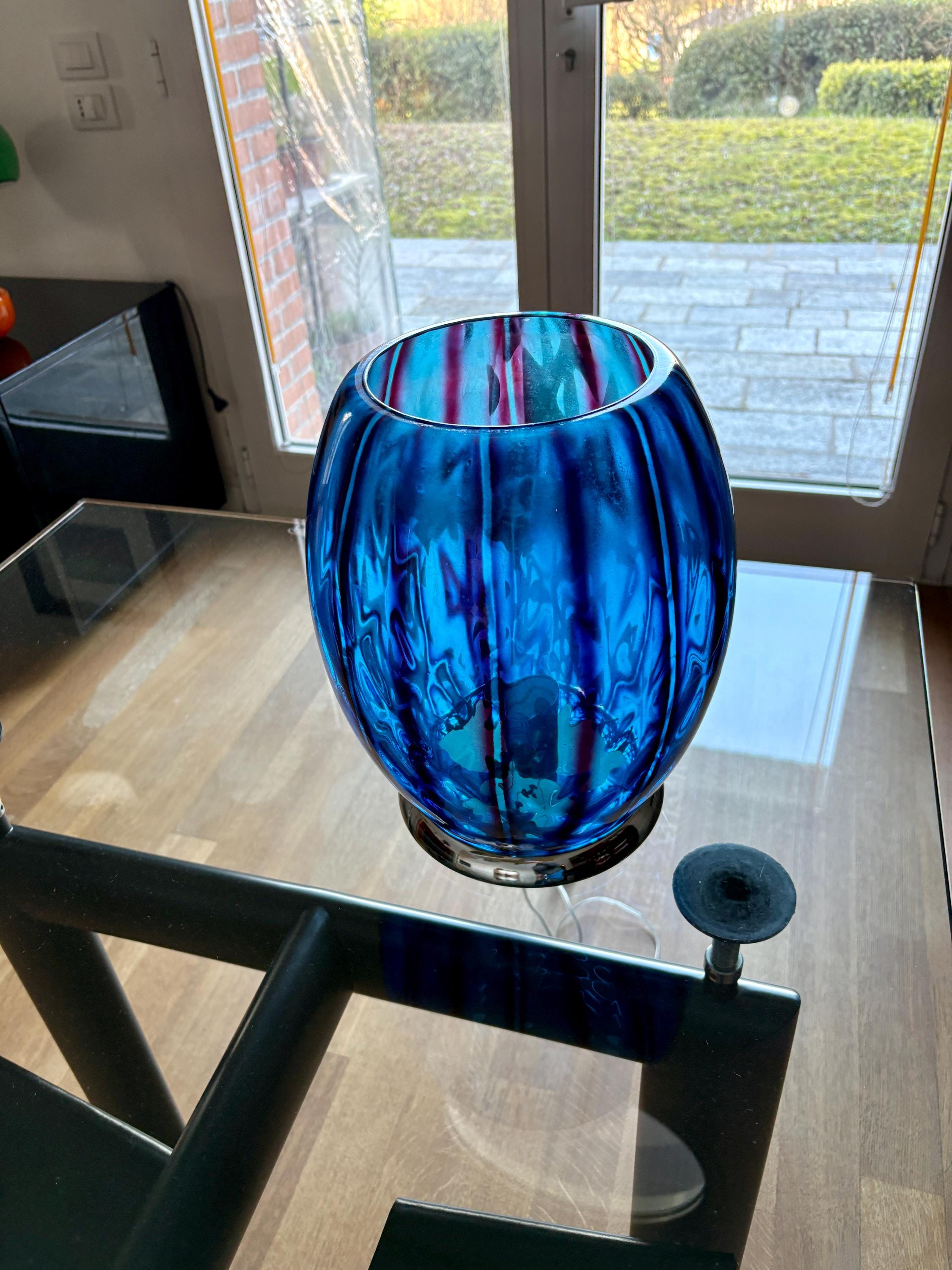 stupenda lampada in vetro con doppia lavorazione che si può ammirare quando la lampada è accesa