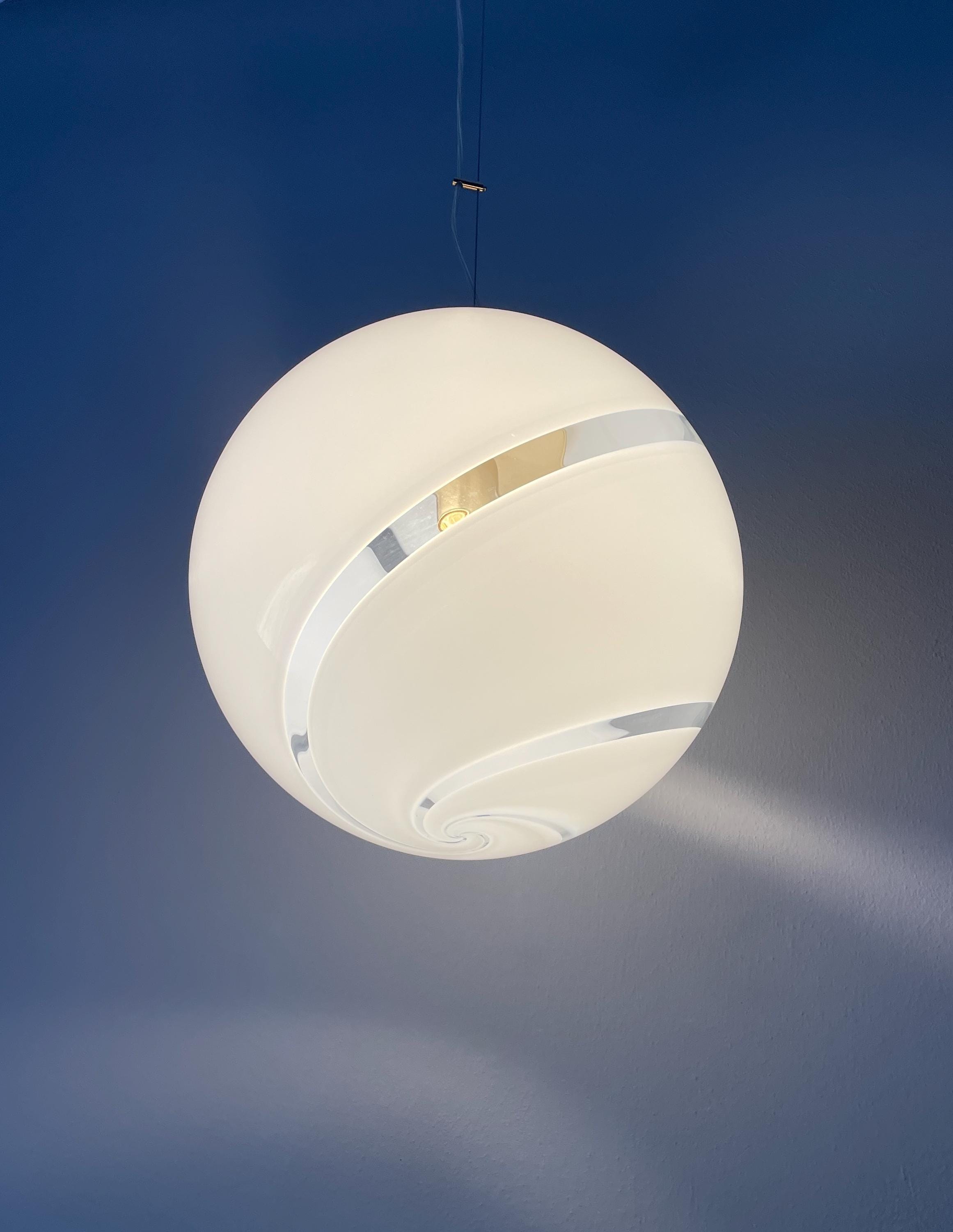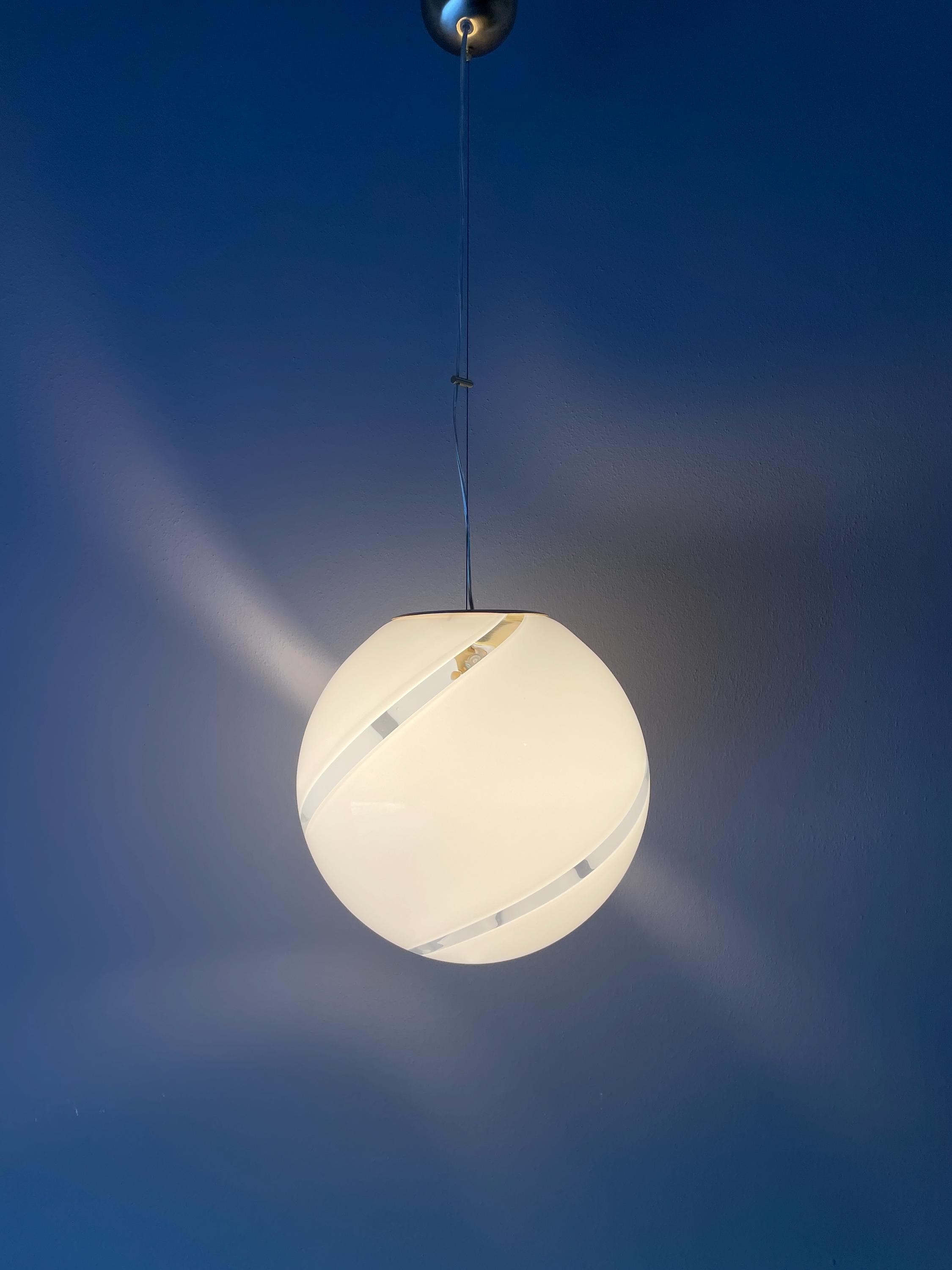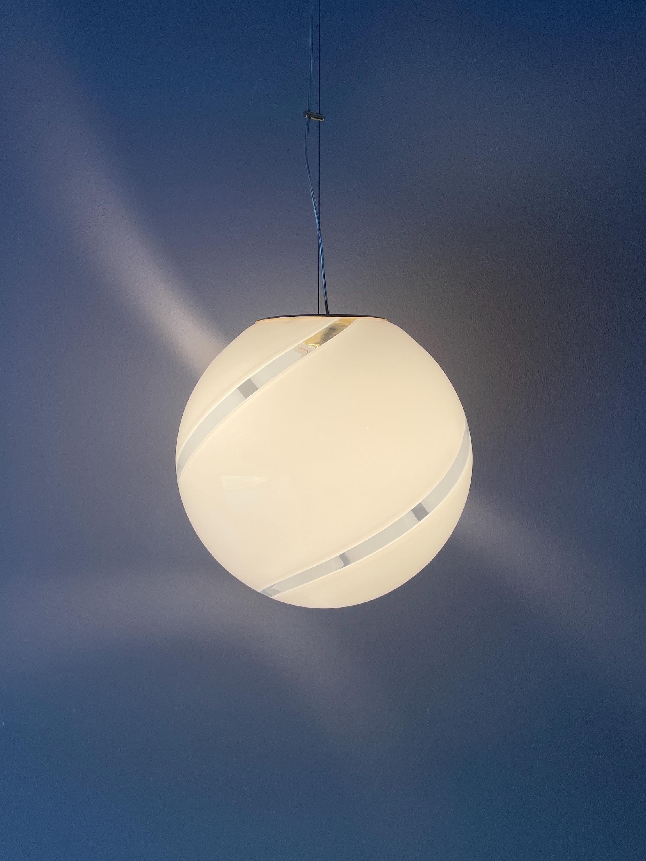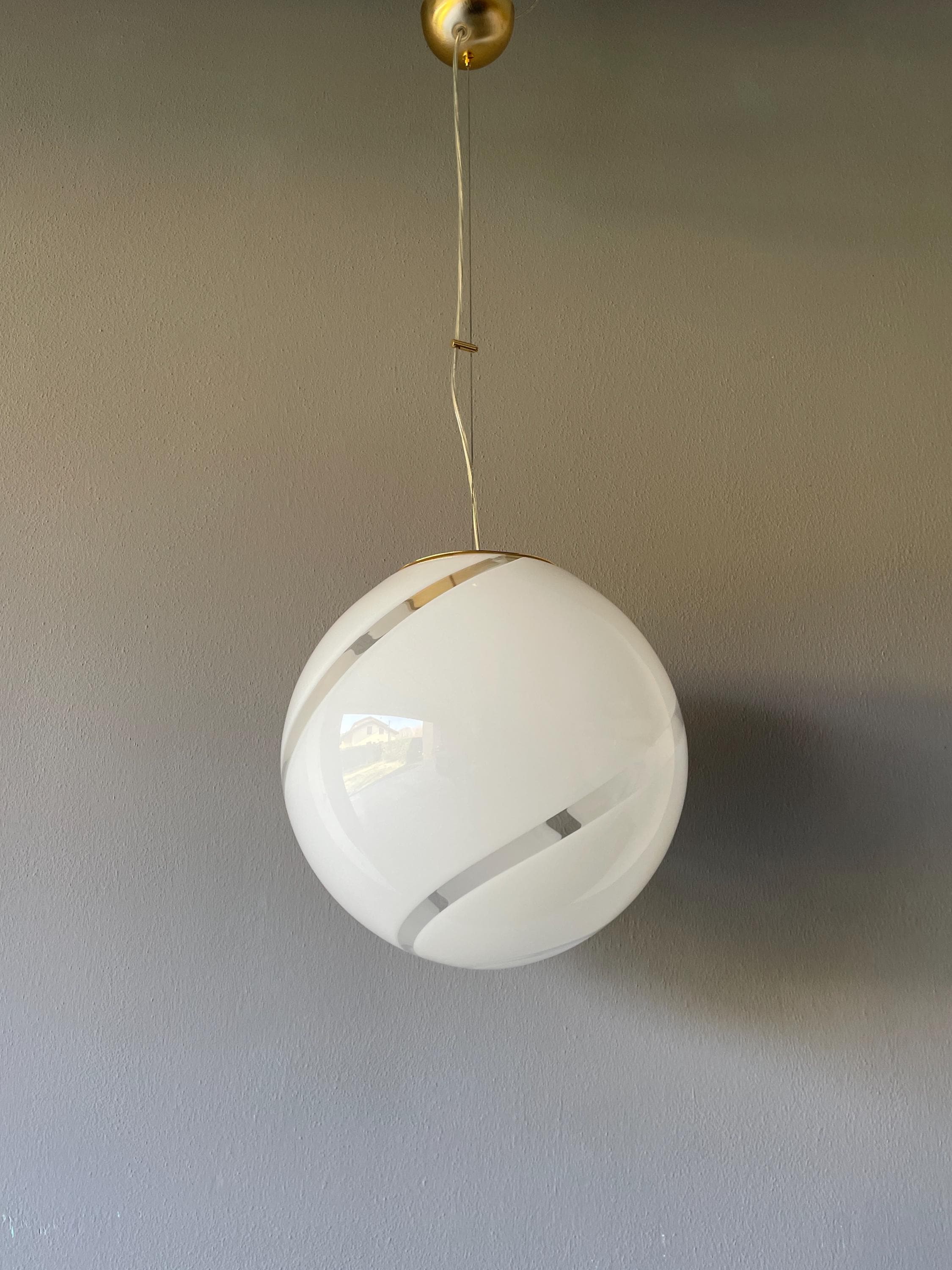 Splendidido lampadario in vetro di Murano, soffiato a bocca, nell'antica tecnica Muranese delle canne ritorte a spirale, bellissimo il vetro incamiciato, bianco e trasparente, la montatura ha finitura oro satinato, solo su richiesta, dopo aver fatto l'ordine, si può avere con montatura silver satinato.